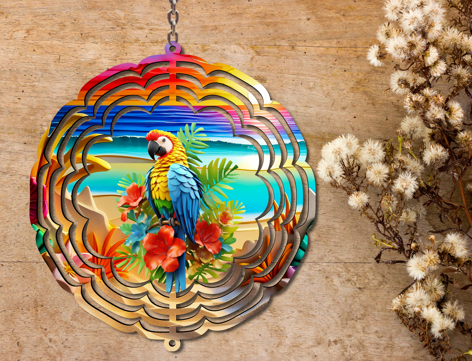 Our aluminum wind spinners have a 3D effect, especially when rotating, you can see the dynamic art rotating in the breeze, bringing out beautiful design patterns. The set includes hanging swivel hook for easy hanging.