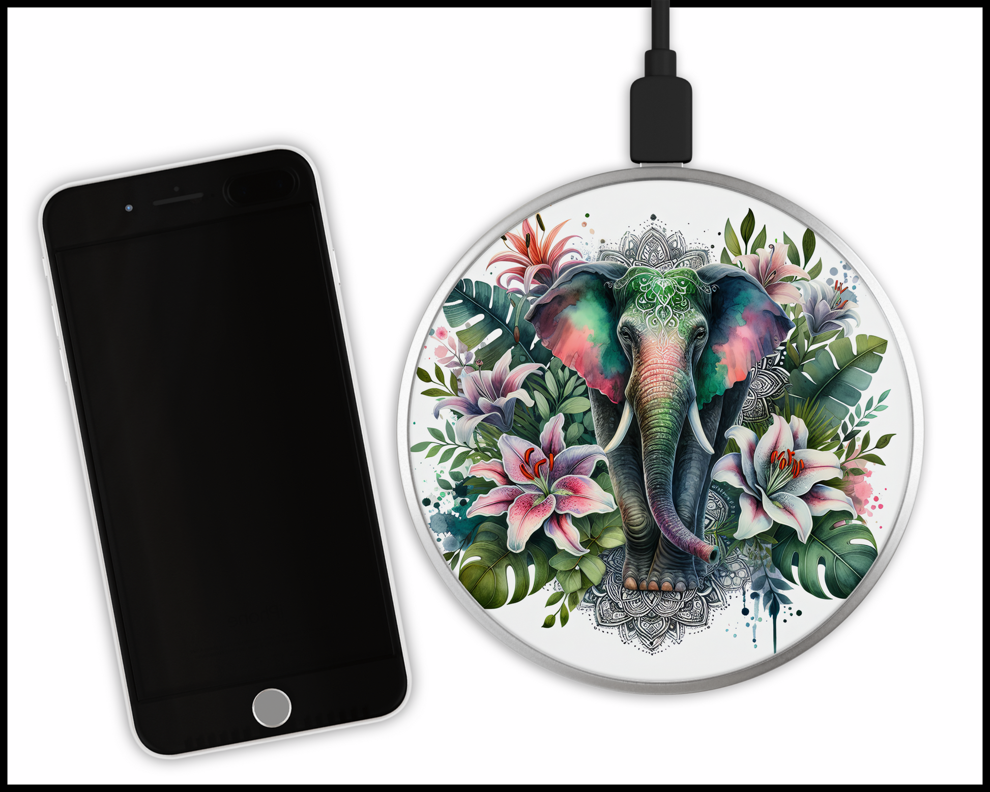 Tropical Elephant Sublimated Wireless Phone Charger (001)